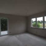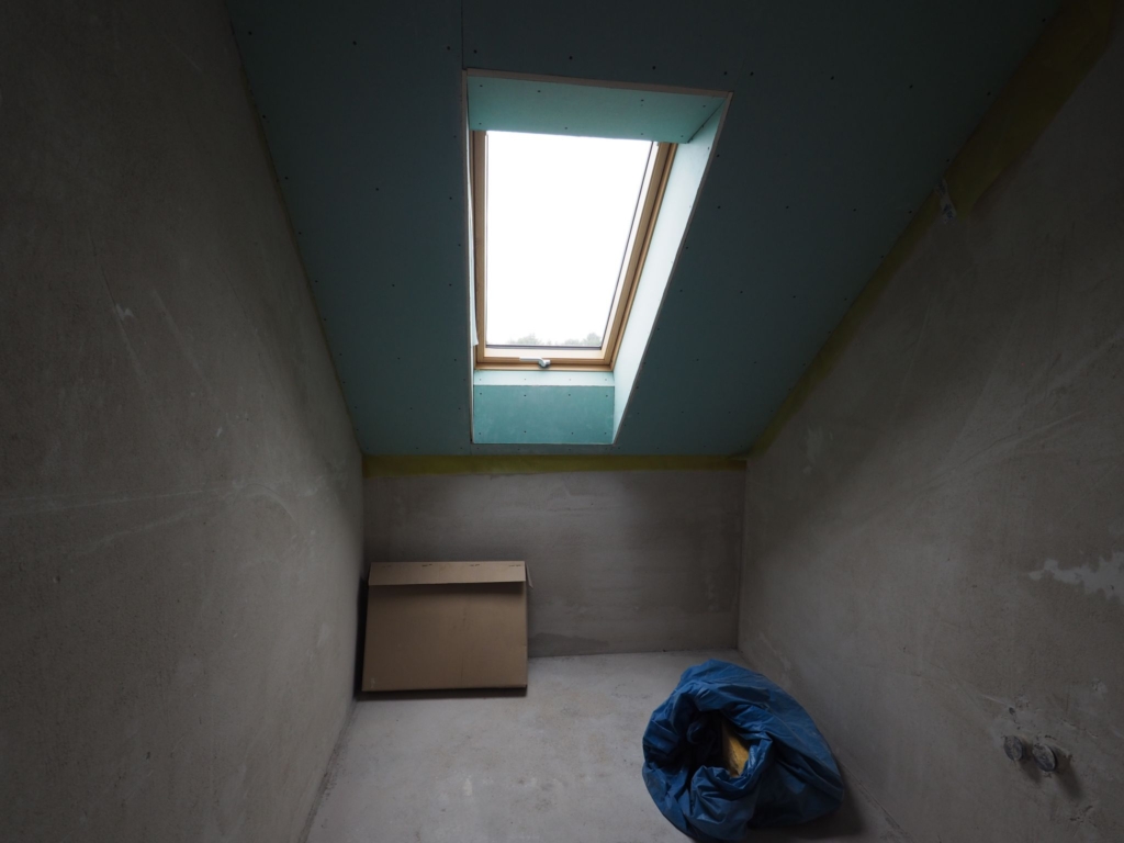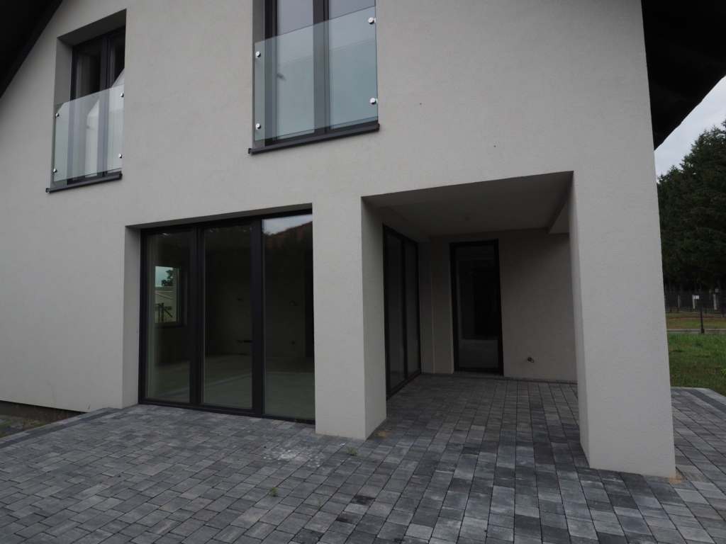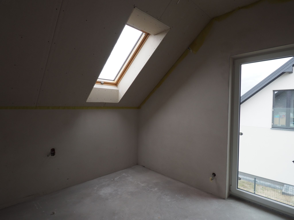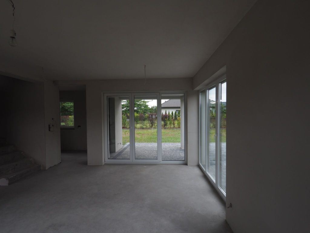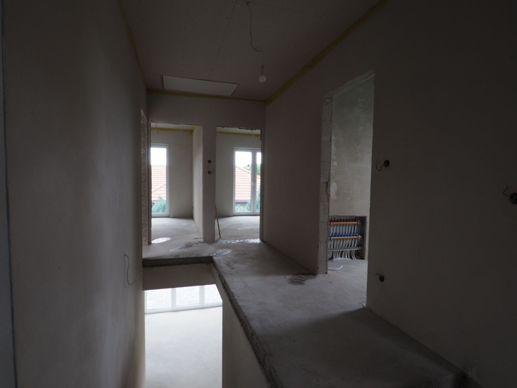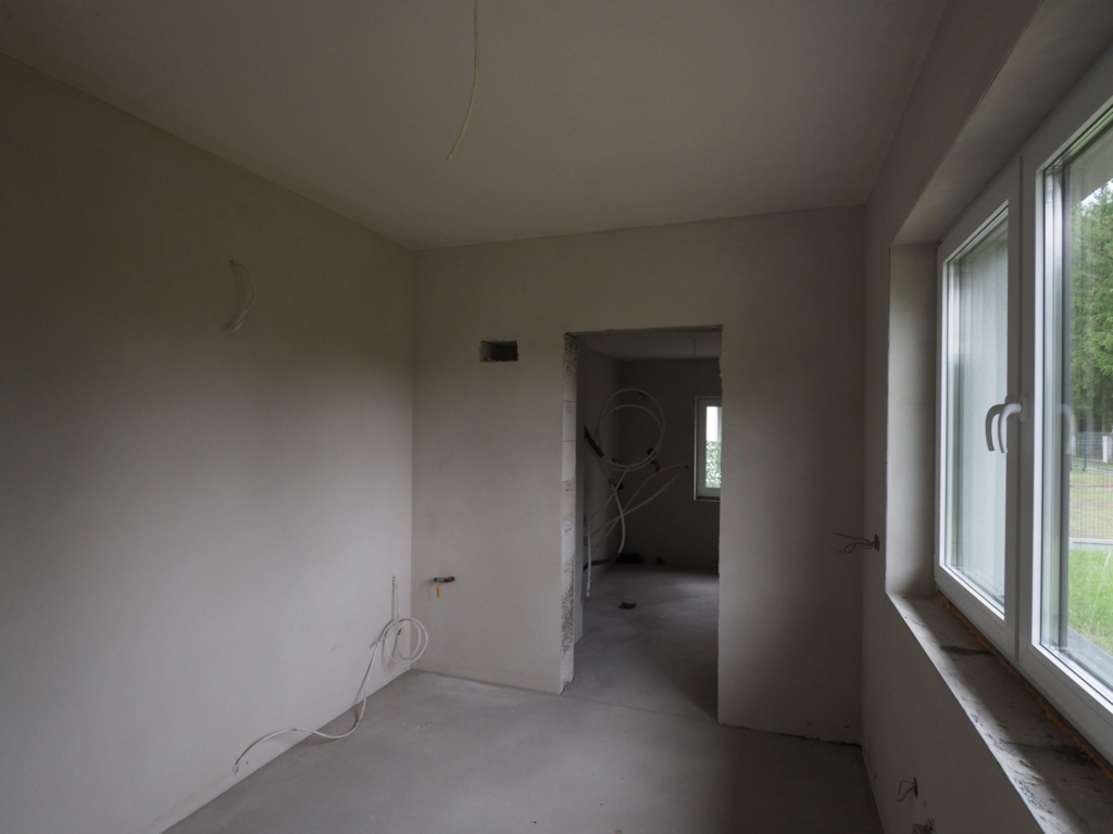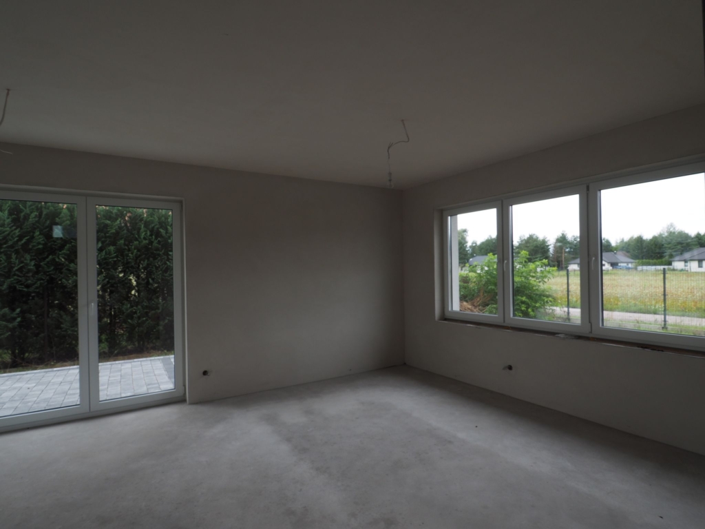 Stan deweloperskim ( bez pieca) działka ogrodzona ogrodzeniem panelowym.