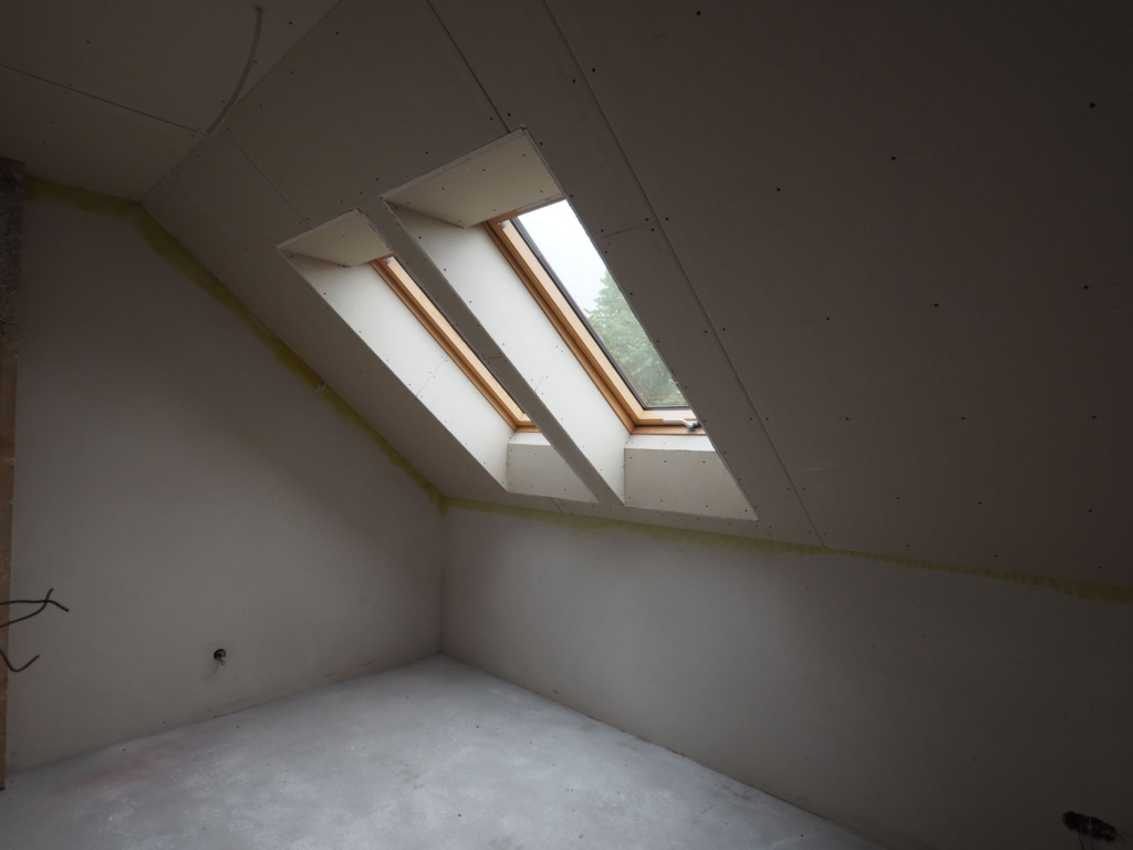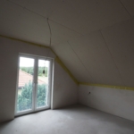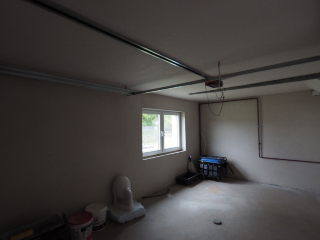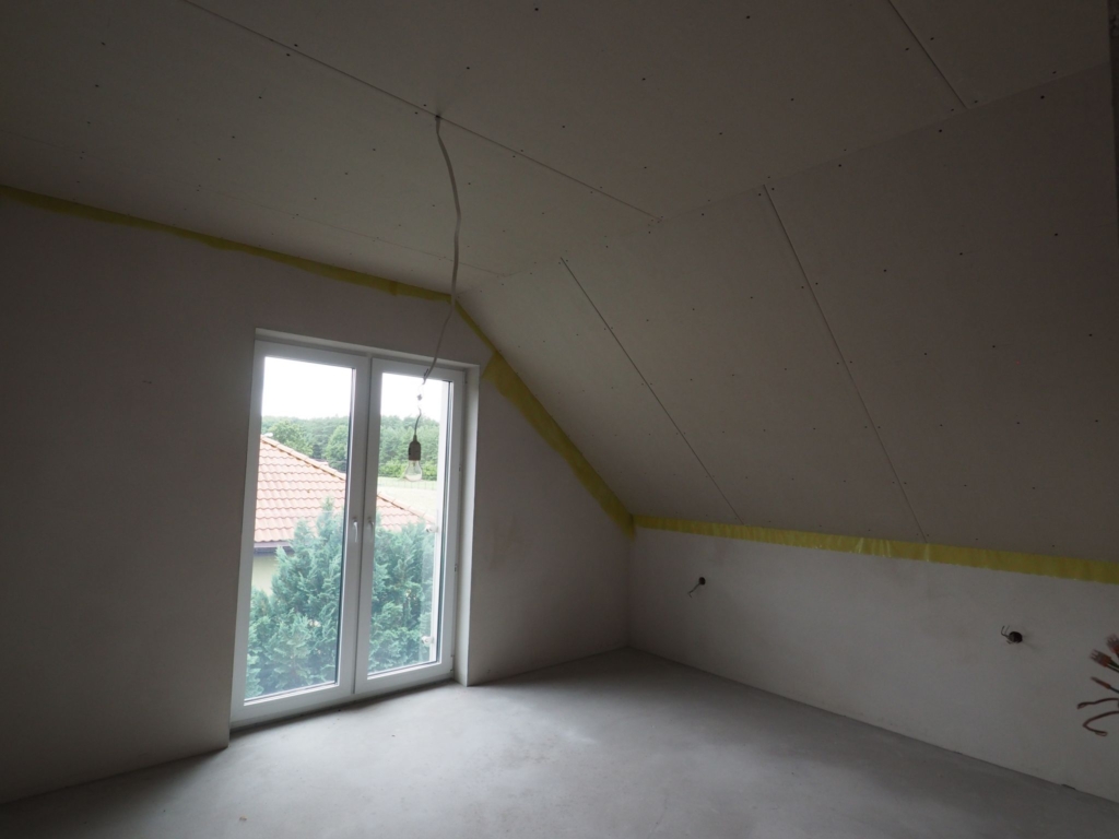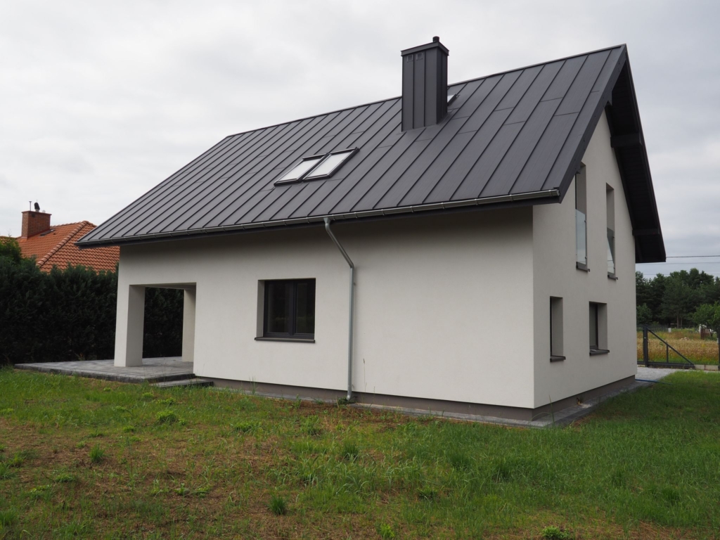 Budynek wybudowany z pustaka H+H, ocieplenie styropianem 20 cm Swisspor, pokrycie dachu blacha płaska na rąbek, przewidziane ogrzewanie gazowe.